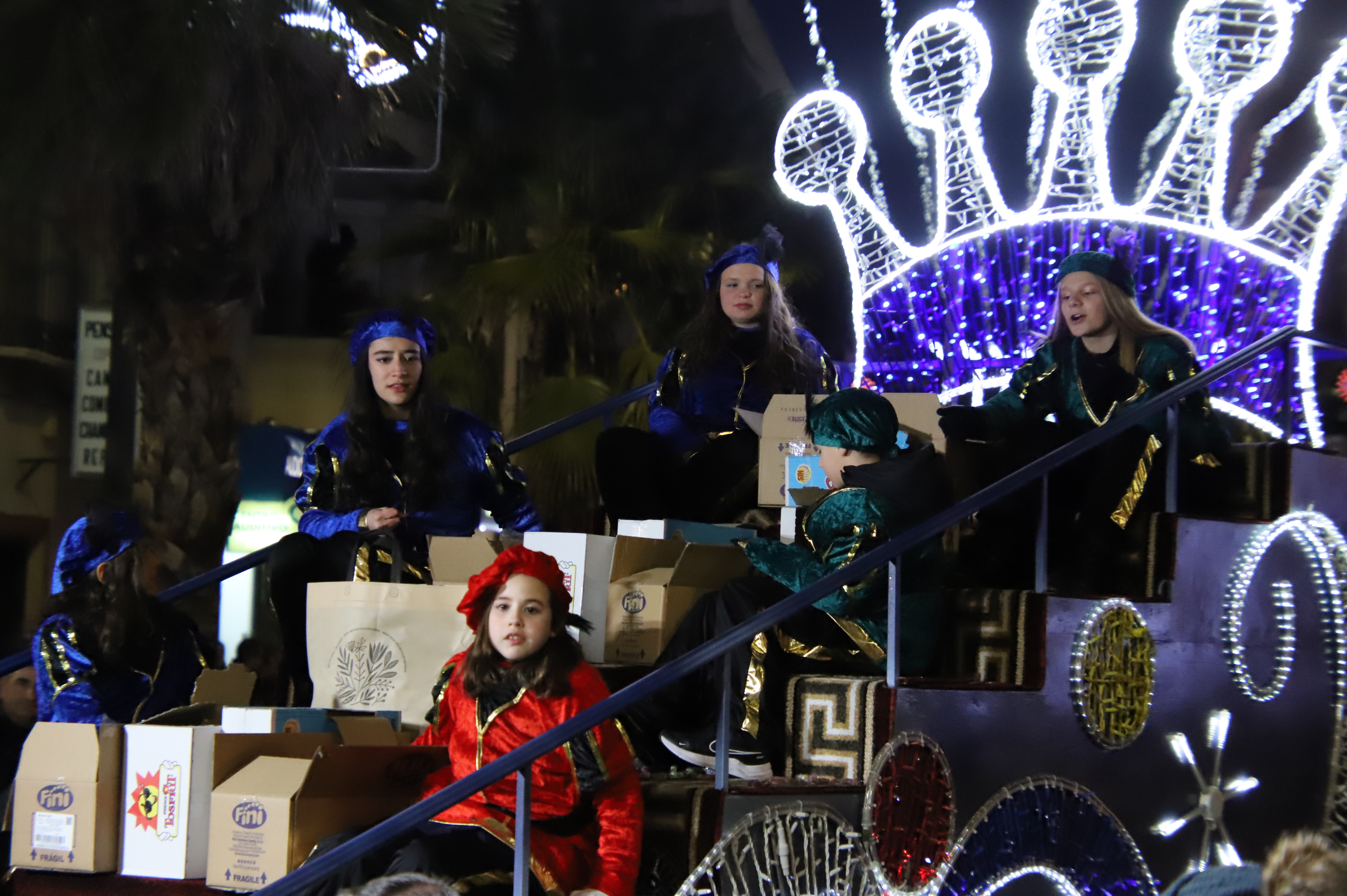 La asociación juvenil ‘Talayot’ con numerosos personajes del mundo infantil, la Asociación de Motos de Otra Época (AMOE) con una carroza de pajes reales y la peña ‘L@s que faltaban’ con una alegoría del árbol de Navidad, con bolas que iban realizando una coreografía, precedieron el paso de los Reyes Magos.