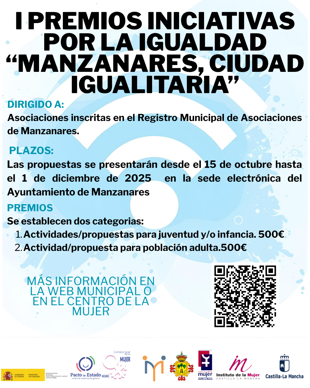 'Manzanares, ciudad igualitaria' se trata de los I Premios Iniciativas por la Igualdad que se realizan en el municipio. Con ellos, se pretende alentar a las asociaciones de la localidad para que saquen adelante y desarrollen iniciativas y proyectos que ayuden a lograr una equidad real para la ciudadanía. Como señaló Laura Carrillo, concejala de Políticas de Igualdad, “Invitamos a todas las asociaciones, clubes deportivos a participar. Sabemos que Manzanares es una ciudad que respira valores tan importantes como son la igualdad”.