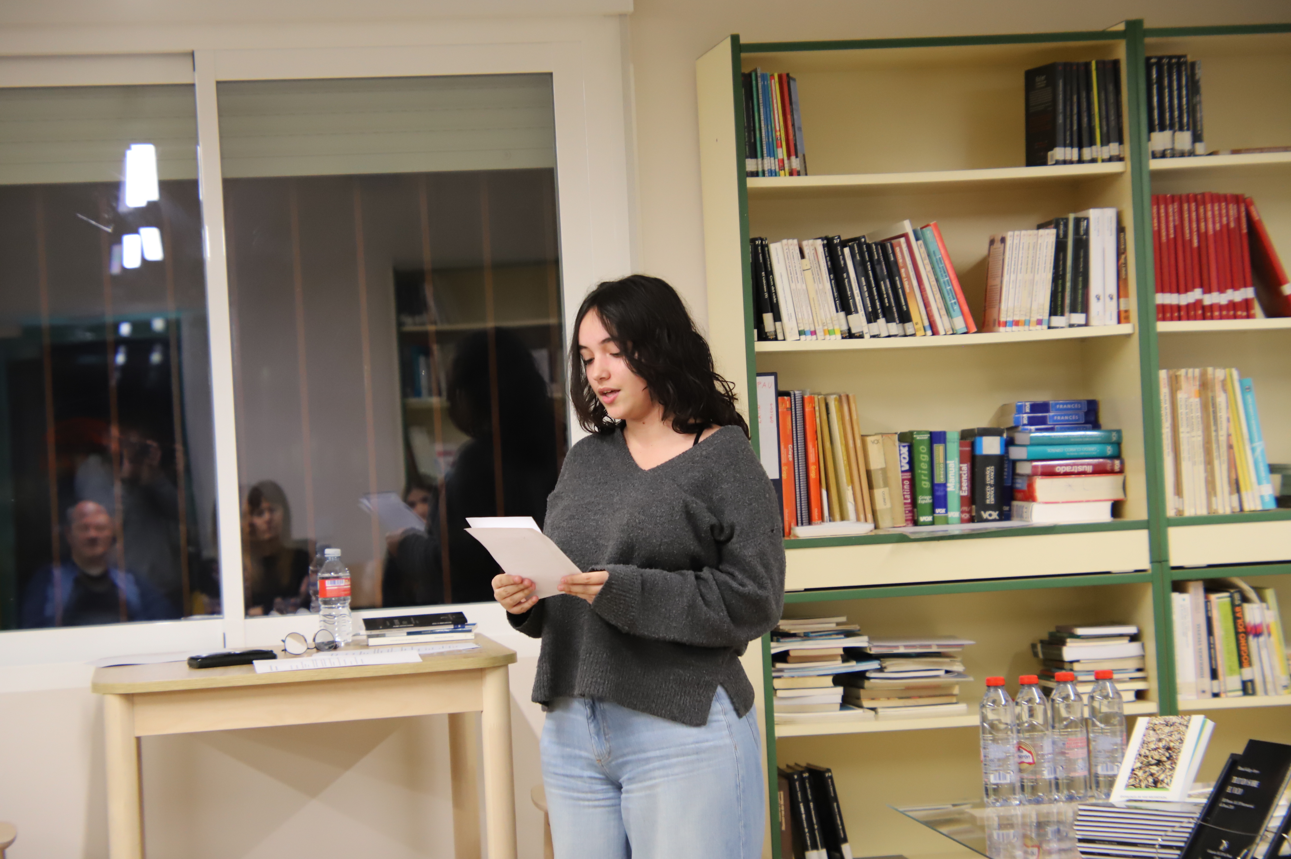 Con el aforo casi en su totalidad, de esta renovada biblioteca, el autor se mostró orgulloso de ver un público tan variopinto, con gente de diferentes edades, interesadas en la poesía. En el acto, además del autor, intervinieron Jesús Villegas, director del IES Azuer, centro donde imparte clase el propio escritor; así como varios de sus alumnos que leyeron algunos poemas recogidos en el libro.