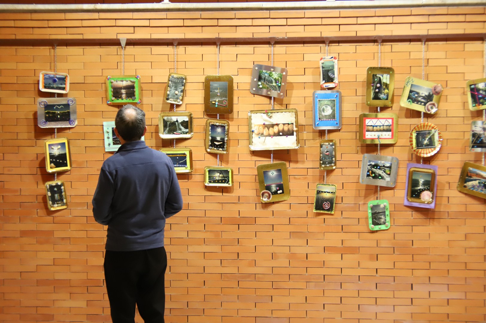 La muestra combina pirograbados, collages y montajes fotográficos para recaudar fondos a beneficio de la asociación ‘Estamos Contigo’