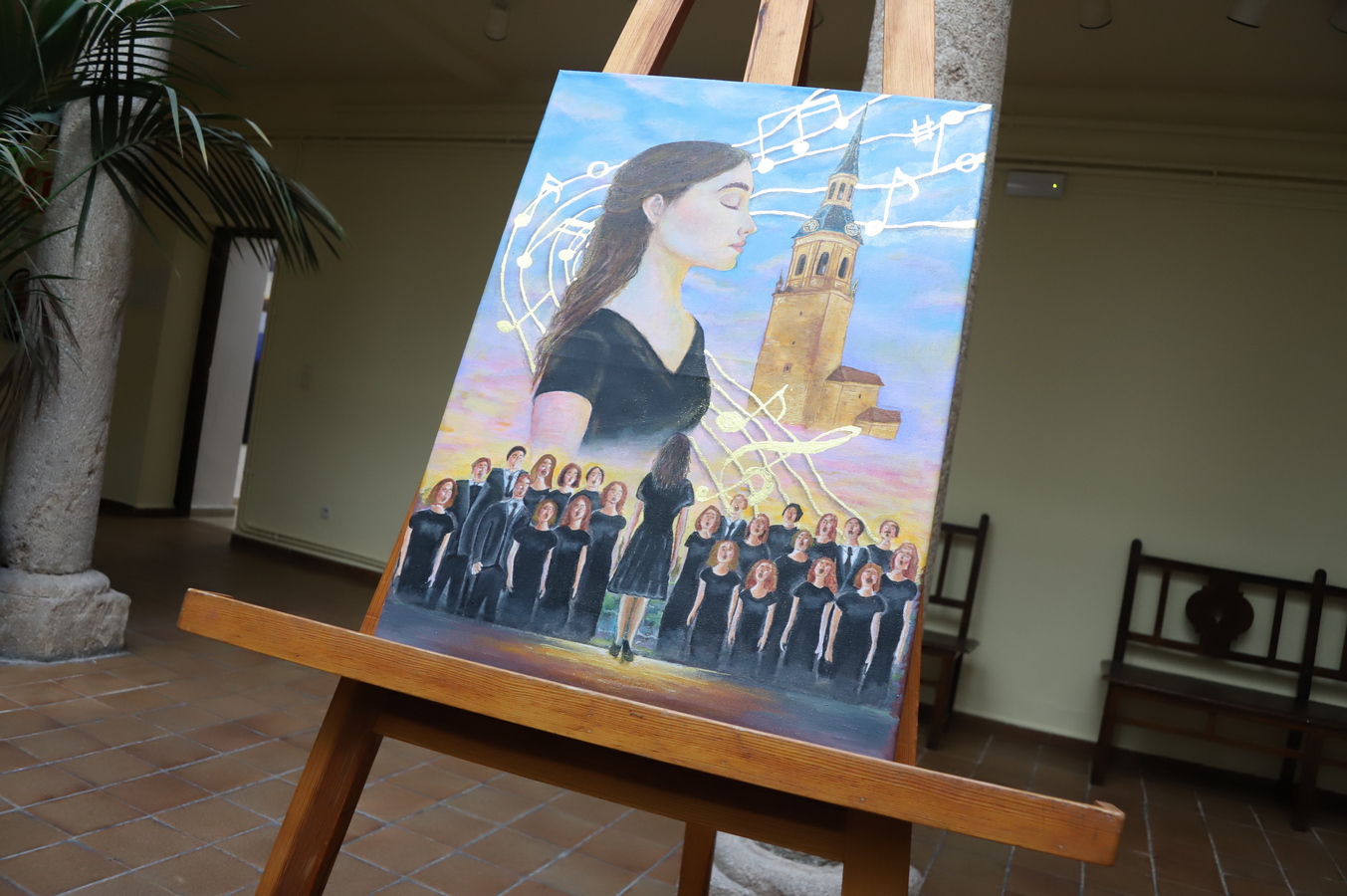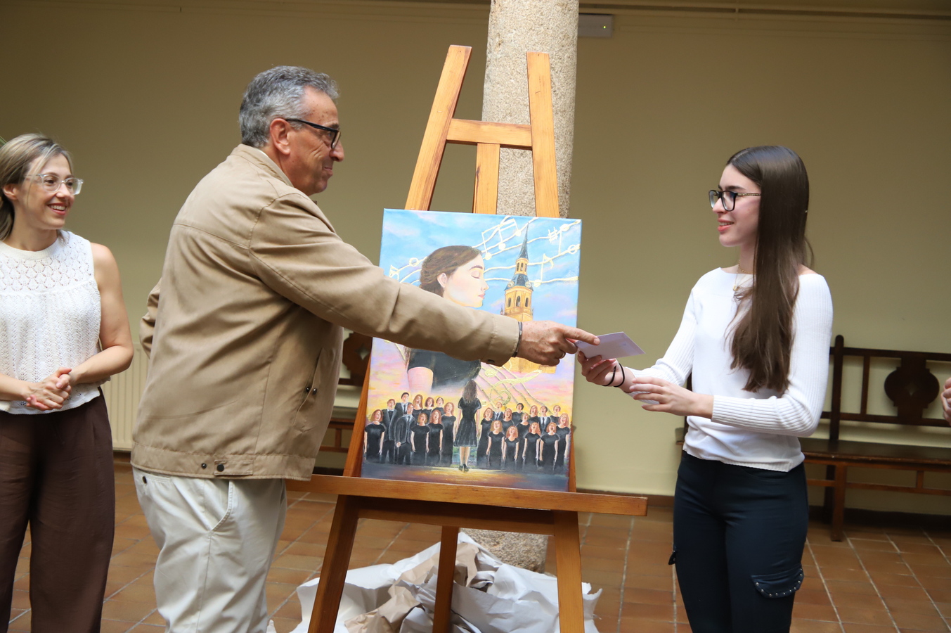 La joven pintora recibió ayer su premio de 400 euros de manos del vicepresidente de la coral polifónica, Benito Mora, que estuvo acompañado por el concejal de Cultura Jesús Romero y la concejala de Políticas de Igualdad Laura Carrillo.