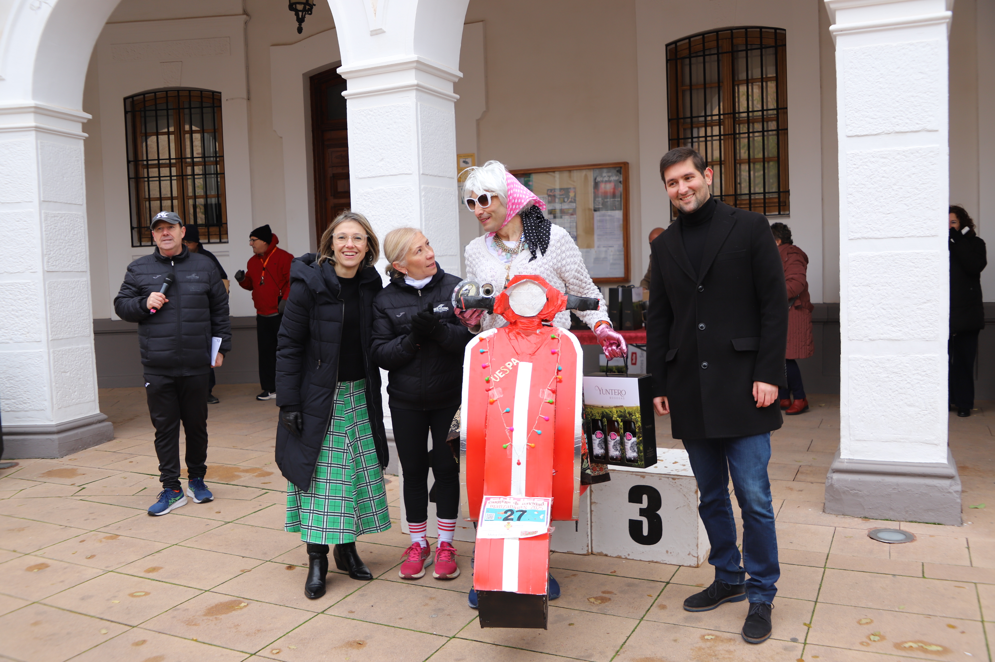 Finalizadas las pruebas, la concejala de Deportes, Laura Carrillo; el concejal de Juventud, Manuel José Palacios; y la presidenta del CA Belmo Muebles Manzanares, Mari Carmen Ruiz-Escribano, hicieron entrega de los trofeos, así como de los numerosos premios a los mejores disfraces participantes. Desde elfos, renos y disfraces de Santa Claus; hasta una Raffaella Carrà en Vespa o un Belén Viviente; fueron algunos de los disfraces que se pudieron observar. Más allá de los premios y sorteos de lotes de vino y quesos de Manzanares, el mejor trofeo fue haber disfrutado de una jornada agradable de deporte, convivencia y diversión.