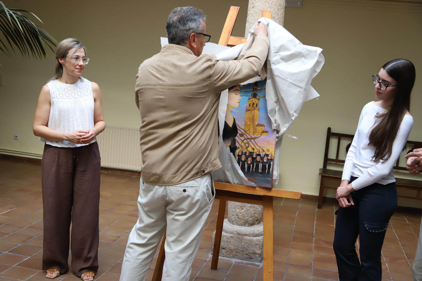 La joven pintora recibió ayer su premio de 400 euros de manos del vicepresidente de la coral polifónica, Benito Mora, que estuvo acompañado por el concejal de Cultura Jesús Romero y la concejala de Políticas de Igualdad Laura Carrillo.