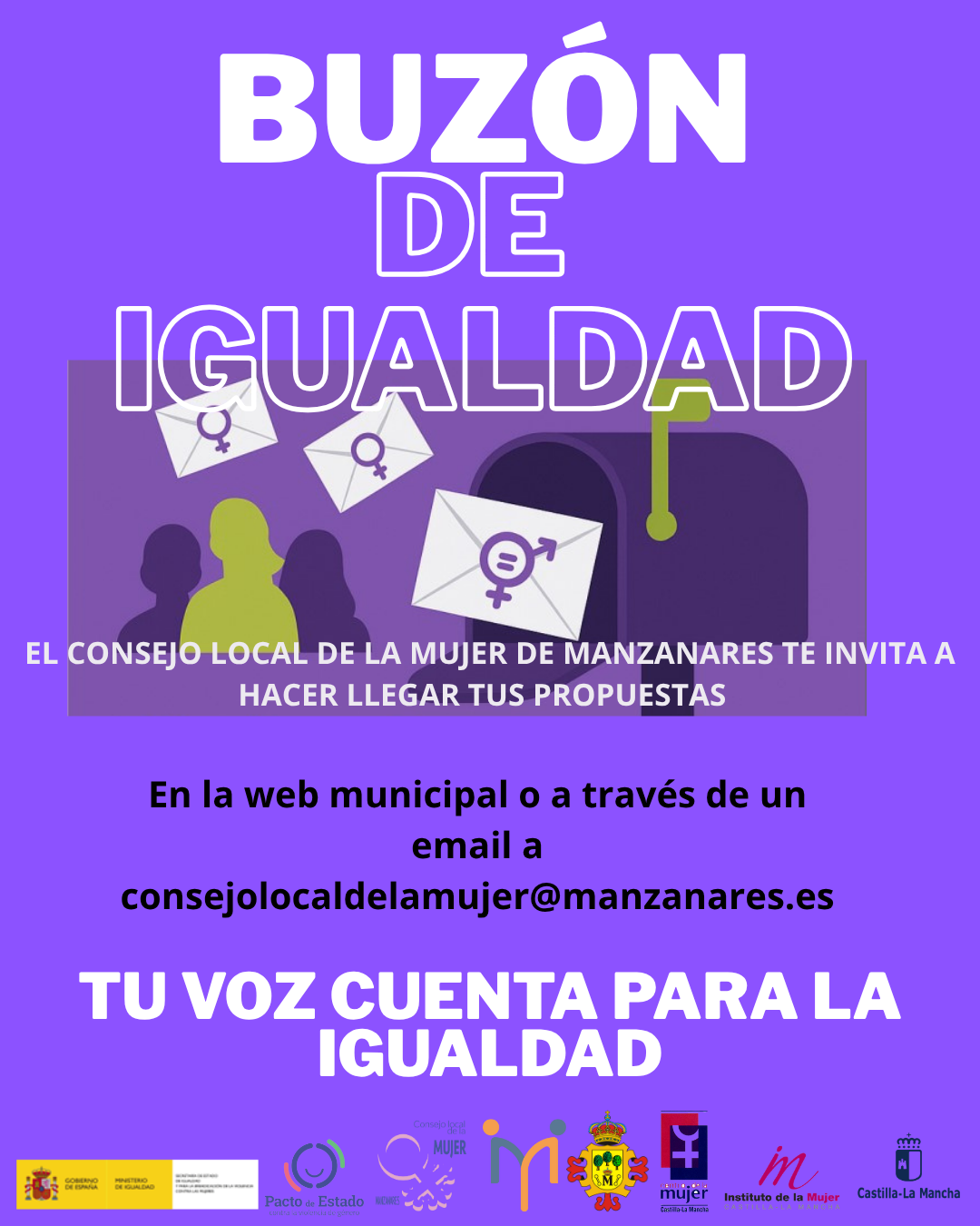 Otra novedad puesta en marcha por el Área de Políticas de Igualdad es el Buzón de Igualdad, una de las primeras acciones del Plan Estratégico Municipal de Igualdad de oportunidades entre hombres y mujeres de Manzanares. Se encuentra en el espacio que el Centro de la Mujer tiene en la página web del Ayuntamiento. “Queremos que sea un espacio colaborativo, un espacio abierto, participativo donde las manzanareñas y manzanareños puedan verter todas sus inquietudes, todas sus sugerencias” explicaba Carrillo. Con estas acciones, el Ayuntamiento de Manzanares pretende seguir favoreciendo el crecimiento de la igualdad en la localidad a través de distintos programas, planes y actividades.