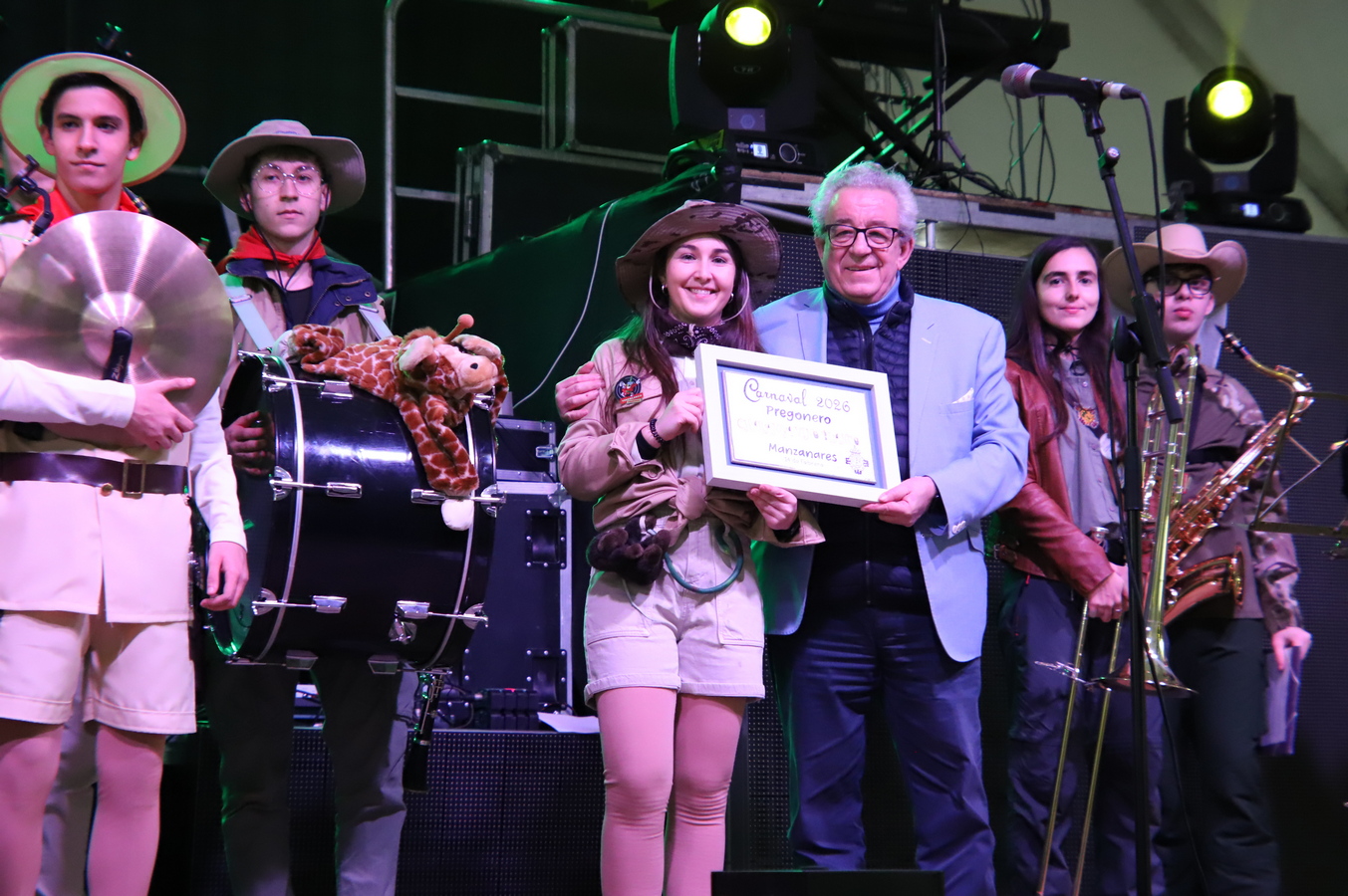 Aunque la ciudadanía manzanareña tuvo un aperitivo en la noche del jueves en el Gran Teatro, donde Teatro Che y Moche, a modo de precarnaval, ofreció la representación de 'El funeral', no fue hasta el viernes cuando se dio el pistoletazo de salida al carnaval 2026. Tuvo lugar en la carpa con la joven Charanga Vinoblanco como maestra de ceremonias. “Para nosotros es una responsabilidad pregonar estas fiestas, pero queremos demostrar que la juventud también está aquí dispuestas a hacer cosas por el pueblo”, señaló Celia Molina, una de las integrantes del grupo. “Son unos excelentes músicos. Para muestra, lo que ha sucedido en los ensayos: ¡el personal de la Orquesta 'Nuevo Versalles' ha alucinado con la calidad musical de nuestra charanga!”, desveló el concejal Candi Sevilla.