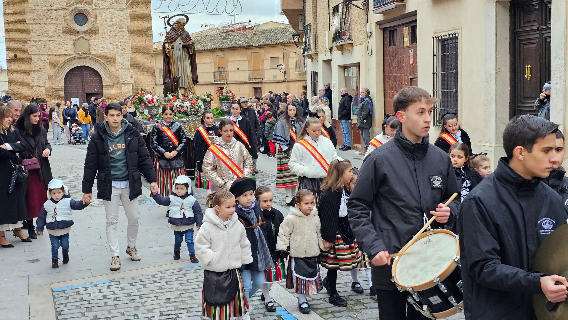 Ese fue el preludio de la procesión de la tarde, con la que se cerraban las fiestas en honor a San Antón 2026. Centenares de personas se encontraron con el santo en las calles por las que pasó una comitiva formada por miembros de la cofradía de San Antonio Abad, representantes de las hermandades locales, de la Corporación Municipal y de la Unidad de Acción Pastoral, la banda de música de la AMC ‘Julián Sánchez-Maroto’ y, vecinas y vecinos del barrio acompañados de sus animales.