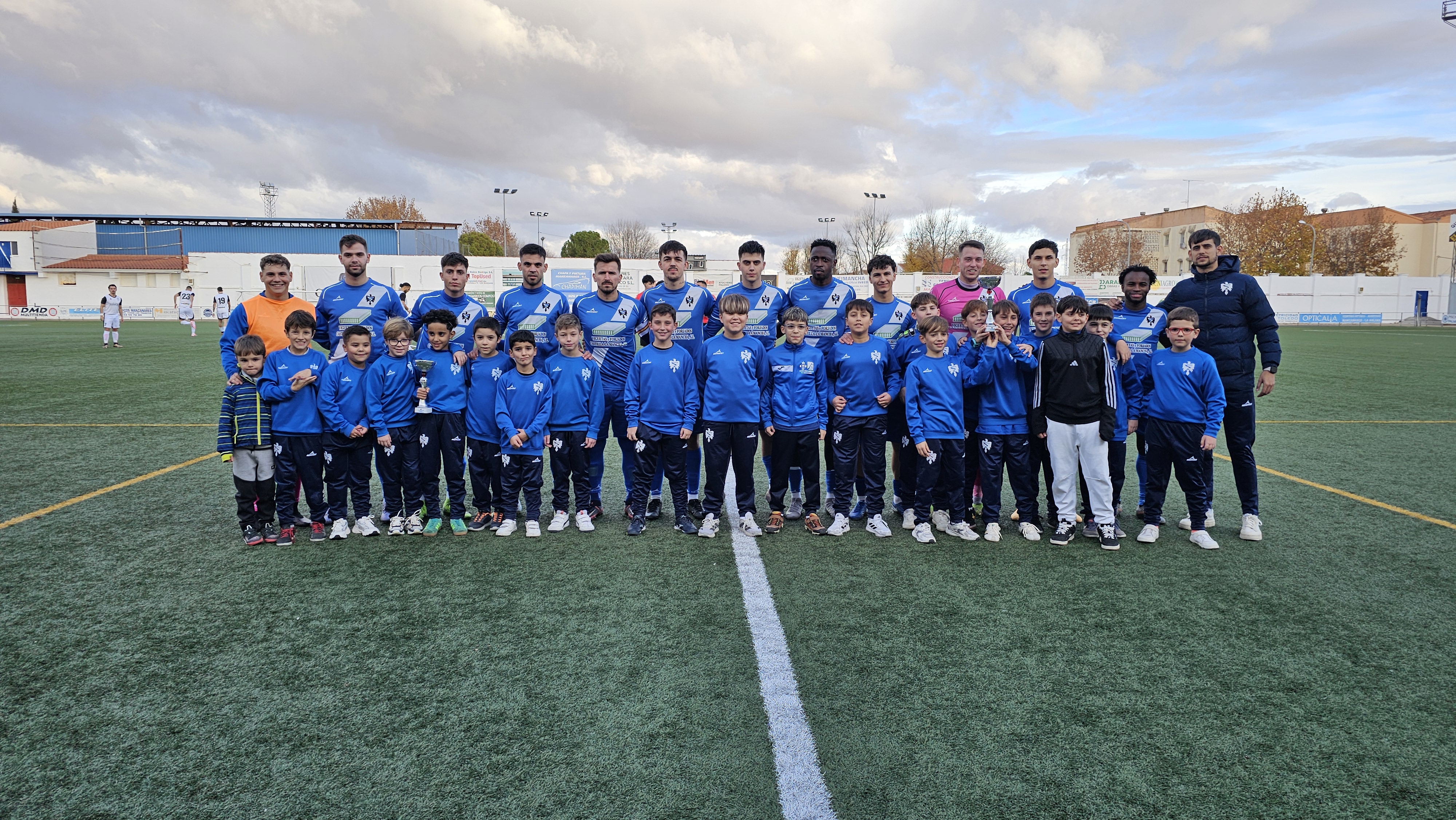 El último partido del año en el ‘José Camacho’ sirvió para que el Manzanares CF se reencontrara con la victoria y para que la afición premiara con su aplauso a los equipos prebenjamines y alevín de la Escuela Municipal de Fútbol. Los canteranos saltaron al campo junto a la primera plantilla con los trofeos conseguidos en las últimas semanas en el torneo ‘Manuel Morata’ de Madrid, donde el alevín fue segundo tras eliminar al Rayo Vallecano en los penaltis. Por su parte, el prebenjamín también fue subcampeón. Perdió la final ante la Academia David Villa tras superar a la Toni Kroos Academy Real Madrid por 6-0.