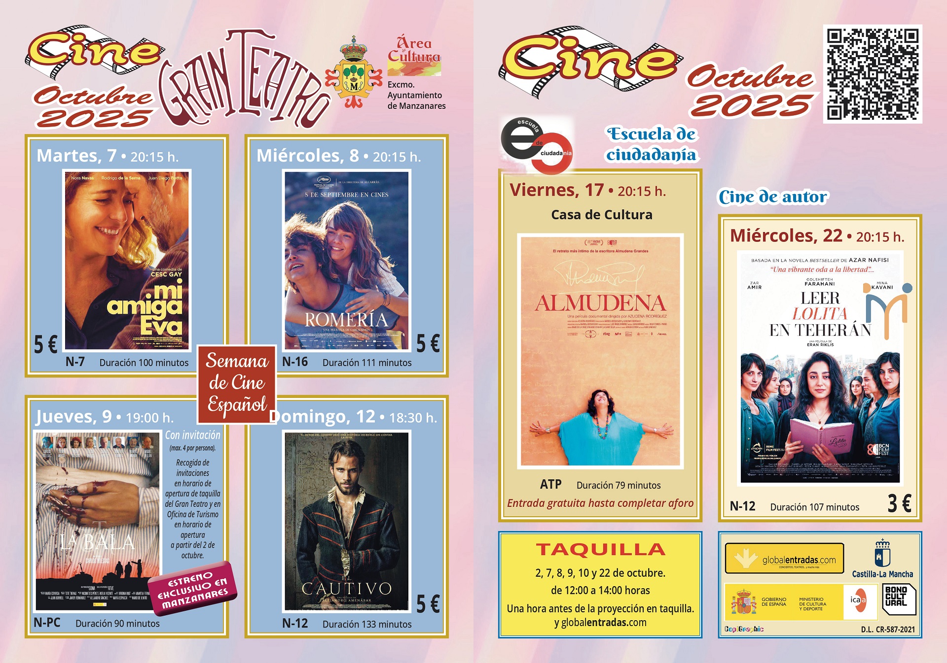 La concejalía de Cultura del Ayuntamiento ha preparado un mes de octubre cargado de propuestas culturales para la ciudadanía. La principal, un estreno exclusivo: la película 'La bala' se verá por primera vez en Manzanares como parte de la Semana del Cine Español. Pero en el Gran Teatro y en la Casa de Cultura habrá más: teatro, danza, música y fotografía completan la programación.