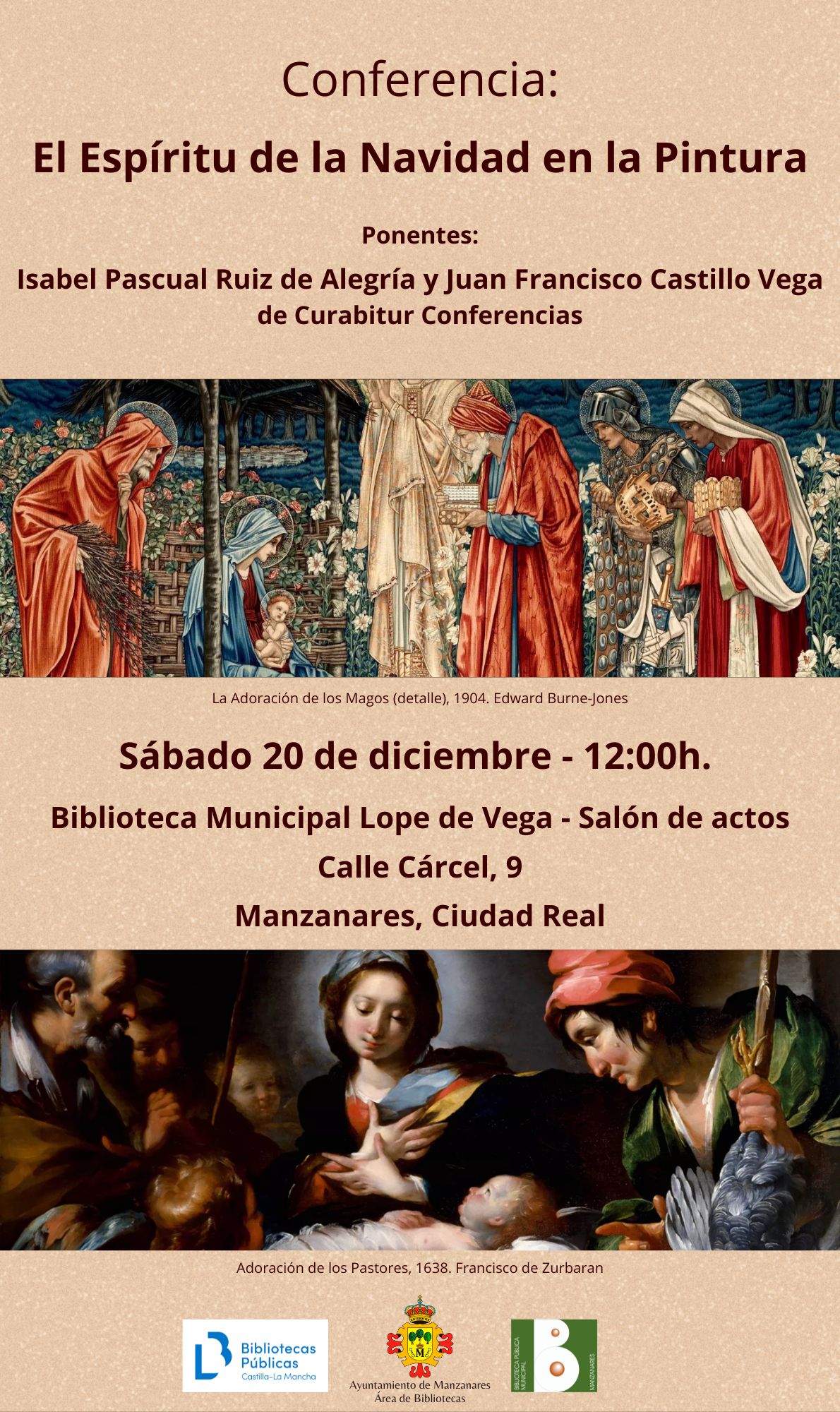 La agenda cultural de Manzanares se completa con una propuesta en la BPM ‘Lope de Vega’ el sábado a las 12 horas: la conferencia ‘El espíritu de la Navidad en la pintura’, a cargo de Isabel Pascual Ruiz y Juan Francisco Castillo Vega, de Curabitur.