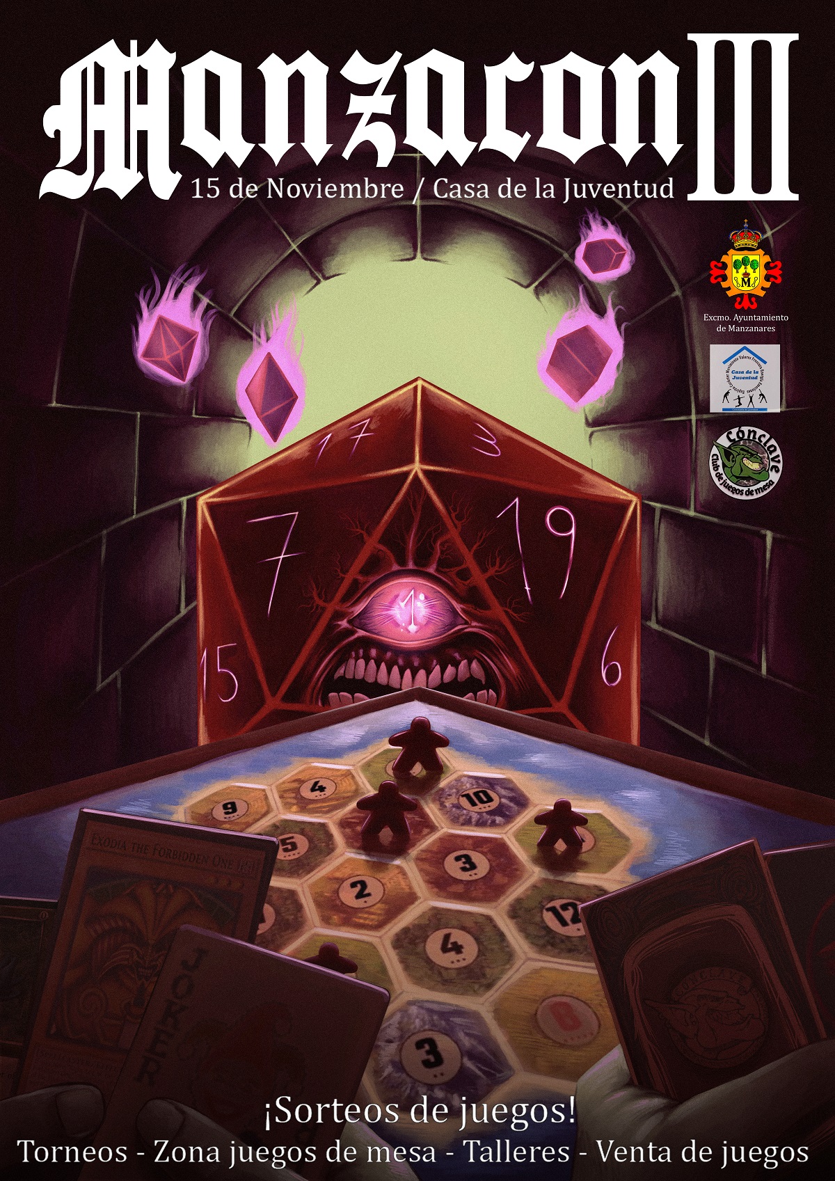 La asociación Cónclave, en colaboración con el área de Juventud del Ayuntamiento de Manzanares, pone en marcha esta sábado una nueva edición del ManzaCON, el evento dedicado a los juegos de mesa, de rol y de cartas que repite por tercer año consecutivo con el objetivo de seguir acercando este apasionante mundo a toda la población.