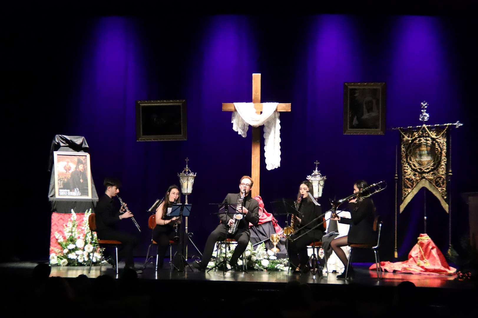 La jornada concluyó con la música sacra del quinteto Euterpe, formado por jóvenes músicos locales, quienes interpretaron marchas como ‘Rocío’, ‘Virgen de los Estudiantes’, ‘Nuestro Padre Jesús’ y ‘Soledad Franciscana’.