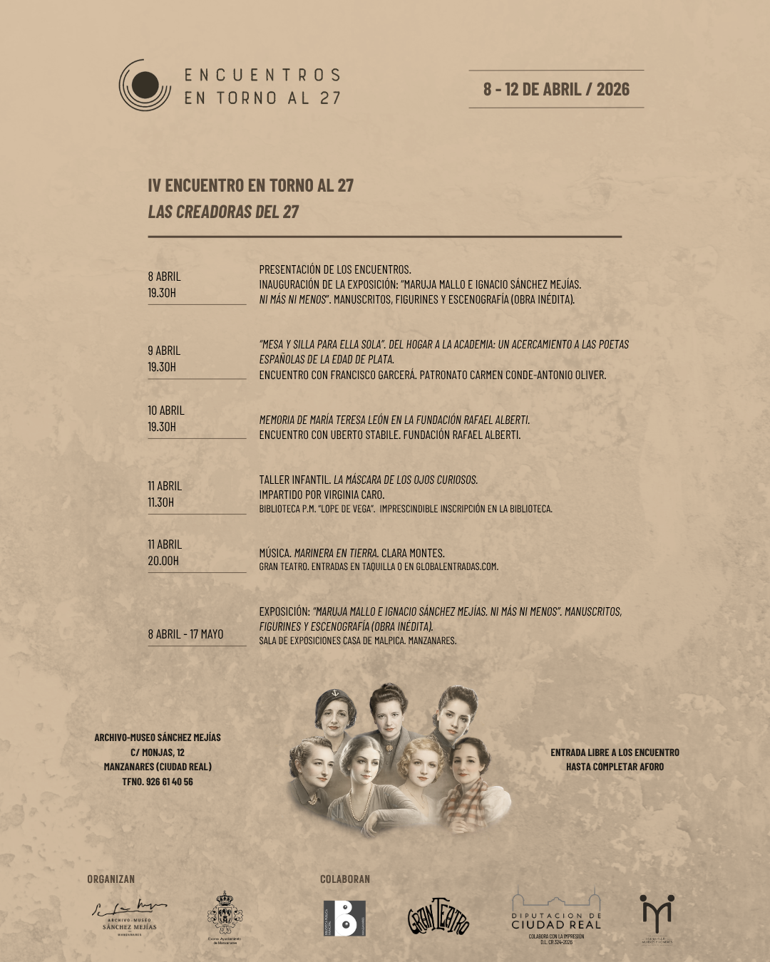 Se avecinan unos días bastante intensos en lo que a eventos culturales se refiere. Y es que la agenda está repleto de propuestas para todos los gustos. La más destacada son los IV Encuentros en torno al 27, pero estos días en Manzanares también disfrutaremos del mejor cine y de exposiciones.