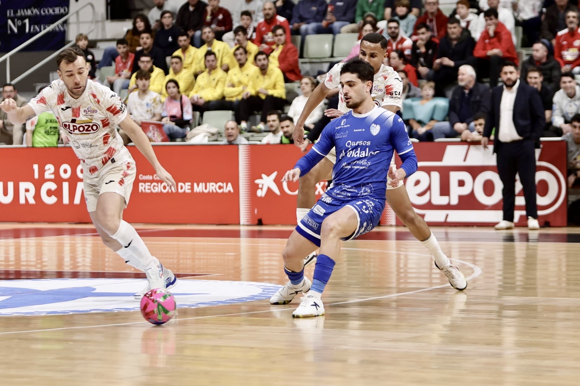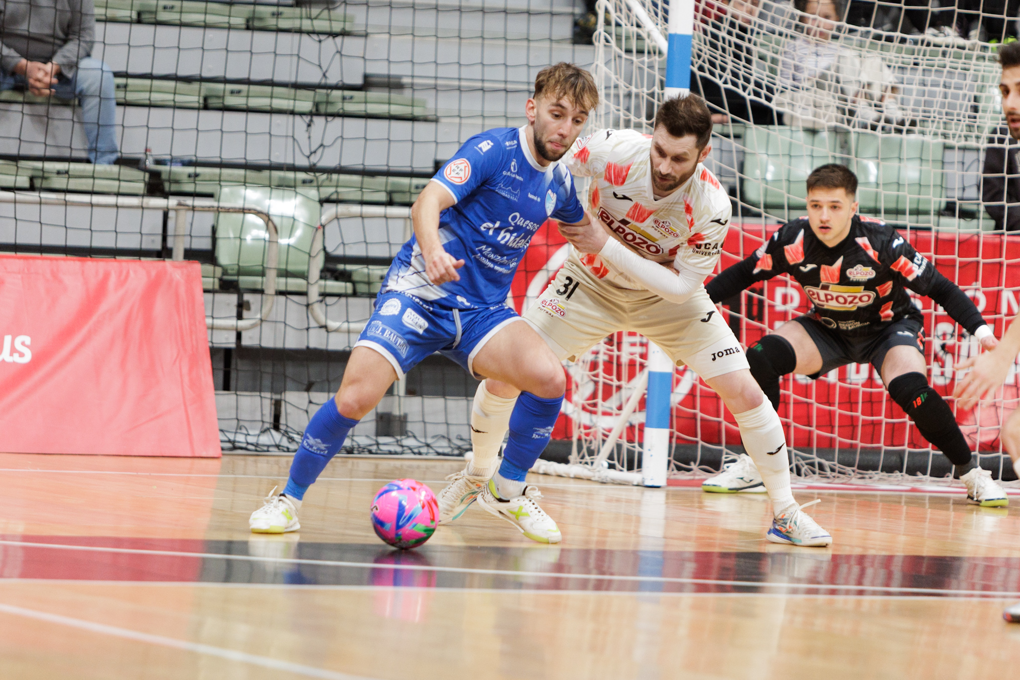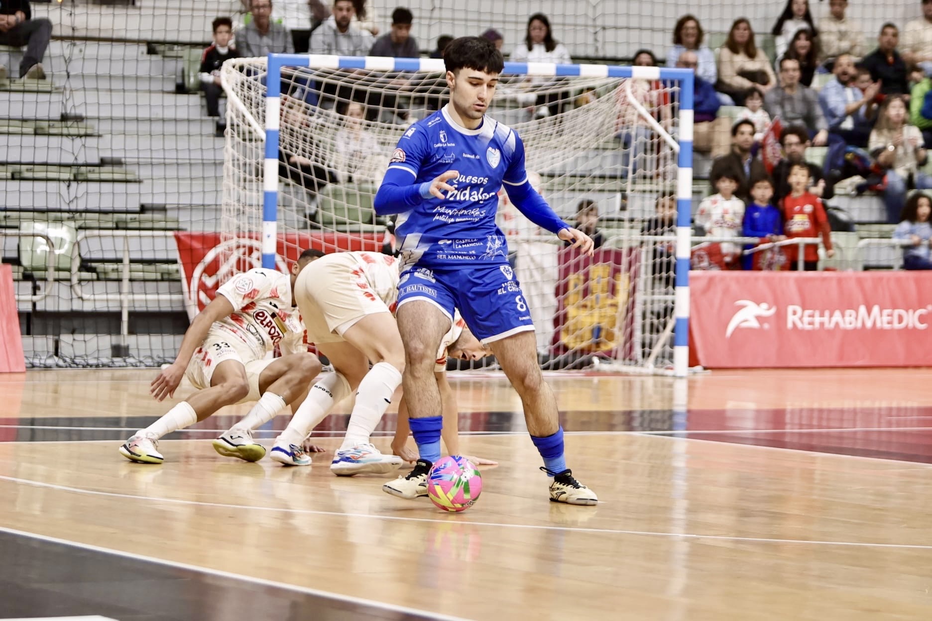 Dos minutos después, Gadeia cometió penalti sobre Álvaro y Daniel, de nuevo, en su partido número 200 con la camiseta del Manzanares, adelantó a los visitantes desde los seis metros. Josan González solicitó tiempo muerto y situó al capitán Marcel de portero-jugador. Los azulones defendieron su ventaja con uñas y dientes y la ampliaron por mediación de Antoñito, que mandó el balón a la jaula desde su campo, tras un excelente control con el pecho. ElPozo recortó distancias a falta de 14 segundos, con un penalti que transformó Marcel, pero no hubo tiempo para más y el cuadro quesero se llevó los tres puntos en el Palacio de los Deportes de Murcia.