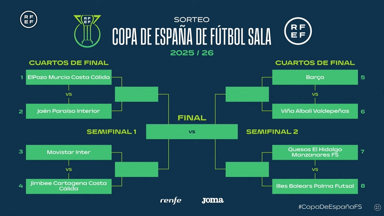 El Quesos El Hidalgo Manzanares FS ya conoce quién será su rival en los cuartos de final de la Copa de España 2025-26 de fútbol sala: el Islas Baleares Palma Futsal.