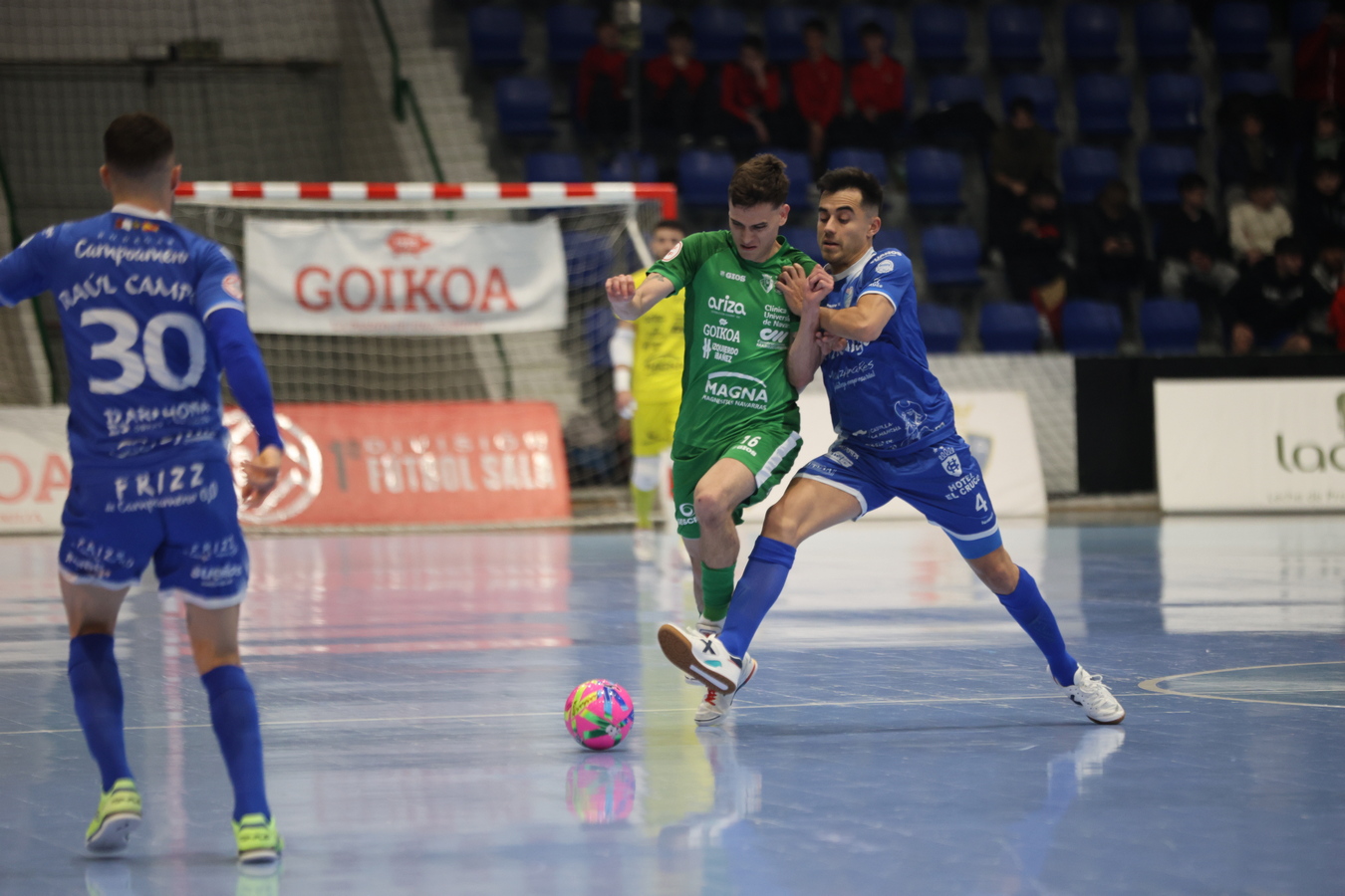 Con los visitantes buscando el empate aparecieron más espacios en la pista. El CA Osasuna Magna los aprovechó para tratar de matar el partido. Sin embargo, volvió a emerger la figura de 'el salvador' Antonio Navarro, que erigió un muro sobre su portería. También Asier tuvo trabajo: desvió a córner un disparo a la escuadra de Humberto. Después, en un intento de contra, perdió un balón que estuvo a punto de convertirse en gol de Toni.
